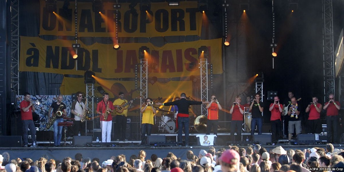 Après les collectifs de paysans, d’élu-e-s, de pilotes, de géographes, de juristes et de naturalistes, ce sont les artistes musiciens qui ont souhaité prendre leur part dans la lutte de Notre Dame des Landes. Et ils l'ont bien montré en 2013 avec la présence de Lo'Jo, La Parisienne Libérée, Bernard Lubat, Fantazio, Startijenn, Gnawa Diffusion, Les Ramoneurs de Menhir, Ewen-Delahaye-Favennec, Bombes 2 Bal, Jacky Molard Quartet, Ursus Minor, Cabadzi, Tryo, Les trompettes du Mozambique, Lo Cor de la Plana ou encore Parabellum...